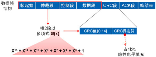 結(jié)構(gòu)上由7個(gè)段組成,幀起始、仲裁段、控制段、數(shù)據(jù)段、CRC段、ACK段和幀結(jié)束(VBUS/2)進(jìn)行比較。圖下圖顯示了實(shí)現(xiàn)該方法所用的電路。