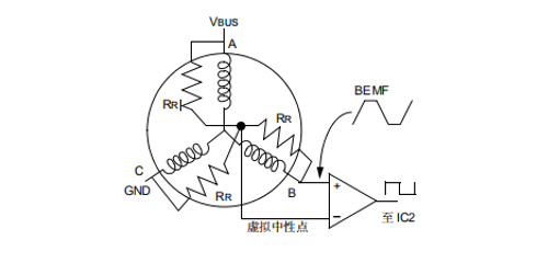 BEMF電壓與直流母線電壓的一半進(jìn)行比較該方法是在假定BEMF電壓等VDC/2時(shí)發(fā)生過零事件的情況下,利用比較器將 BEMF 電壓與直流母線電壓的一半(VBUS/2)進(jìn)行比較。圖下圖顯示了實(shí)現(xiàn)該方法所用的電路。