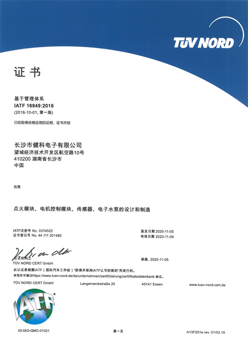 IATF16949:2016質(zhì)量管理體系認(rèn)證證書(shū):