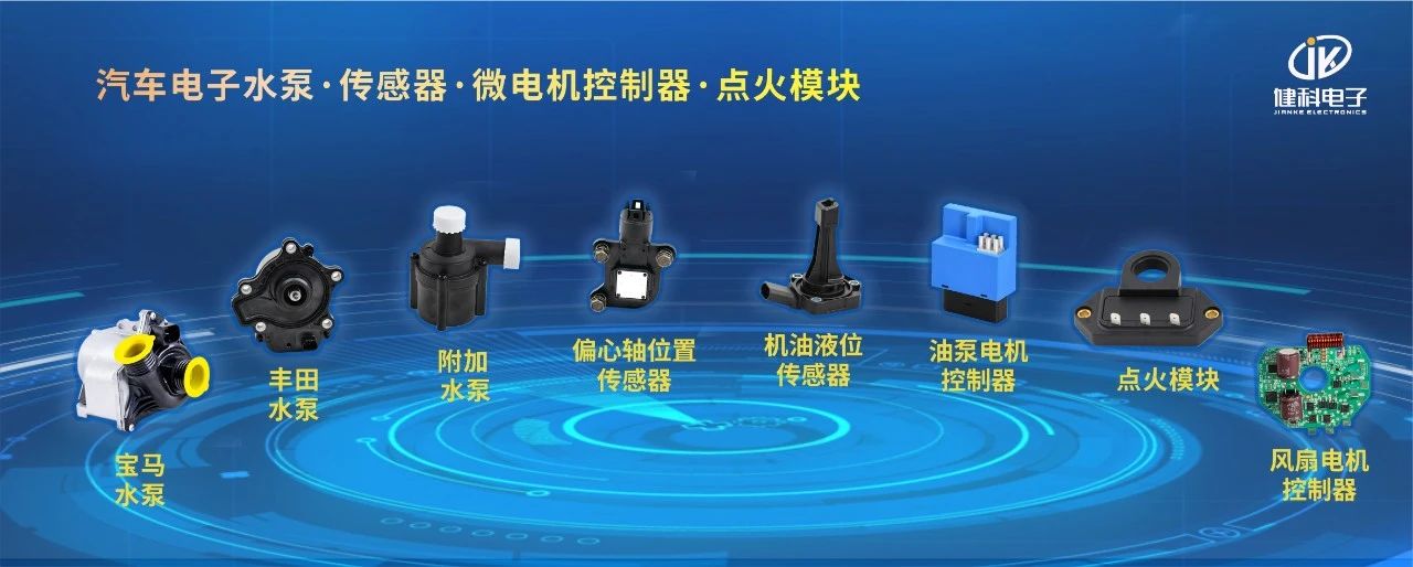健科電子目前有深圳和長(zhǎng)沙兩處生產(chǎn)基地,公司一直專注汽車電子相關(guān)產(chǎn)品的技術(shù)研發(fā)及產(chǎn)業(yè)化,為全球OE及售后市場(chǎng)提供多樣式、定制化的汽車電子產(chǎn)品。 健科電子水泵、傳感器、點(diǎn)火模塊都有多款產(chǎn)品適用于日韓德系車,這次我們展示了豐田水泵WPT190和G902047031,寶馬水泵11517632426,奔馳水泵A2048350364;傳感器12617607910,03C907660H,11377524879, 11377527016;控制器模塊1K0906093K, 253854D900以及點(diǎn)火模塊J121,J152 , 8962135020, 2202060A21等產(chǎn)品。
