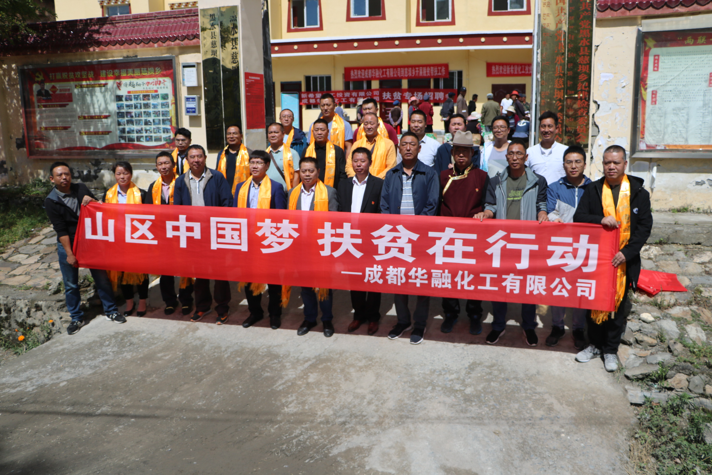 新希望化工和成都華融化學(xué)精準(zhǔn)扶貧服務(wù)隊(duì)與黑水縣和慈壩鄉(xiāng)各位領(lǐng)導(dǎo)合影留念